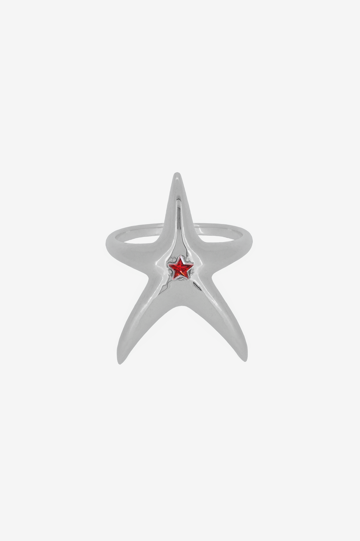 ・通常の指輪のモチーフの場所よりも、星の足がMP関節(指の付け根より下)まで伸びて関節に添う様なカーブを描くデザインで、指を長く見せます。